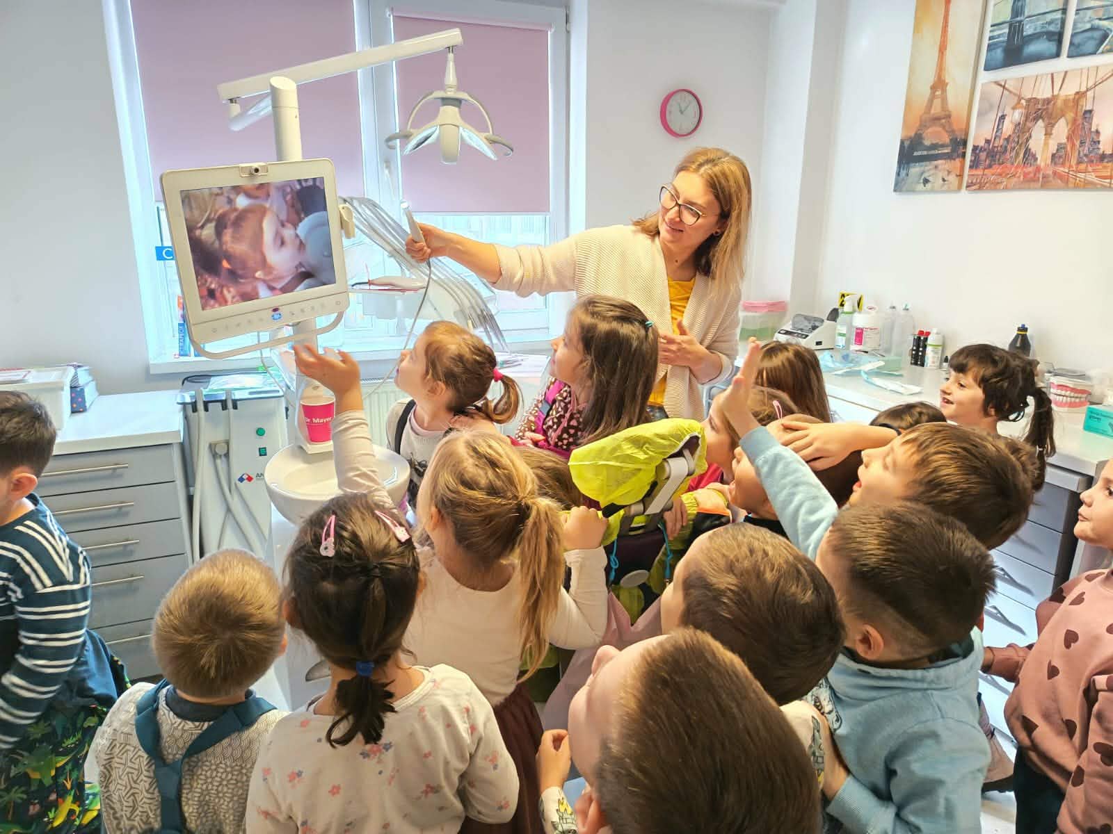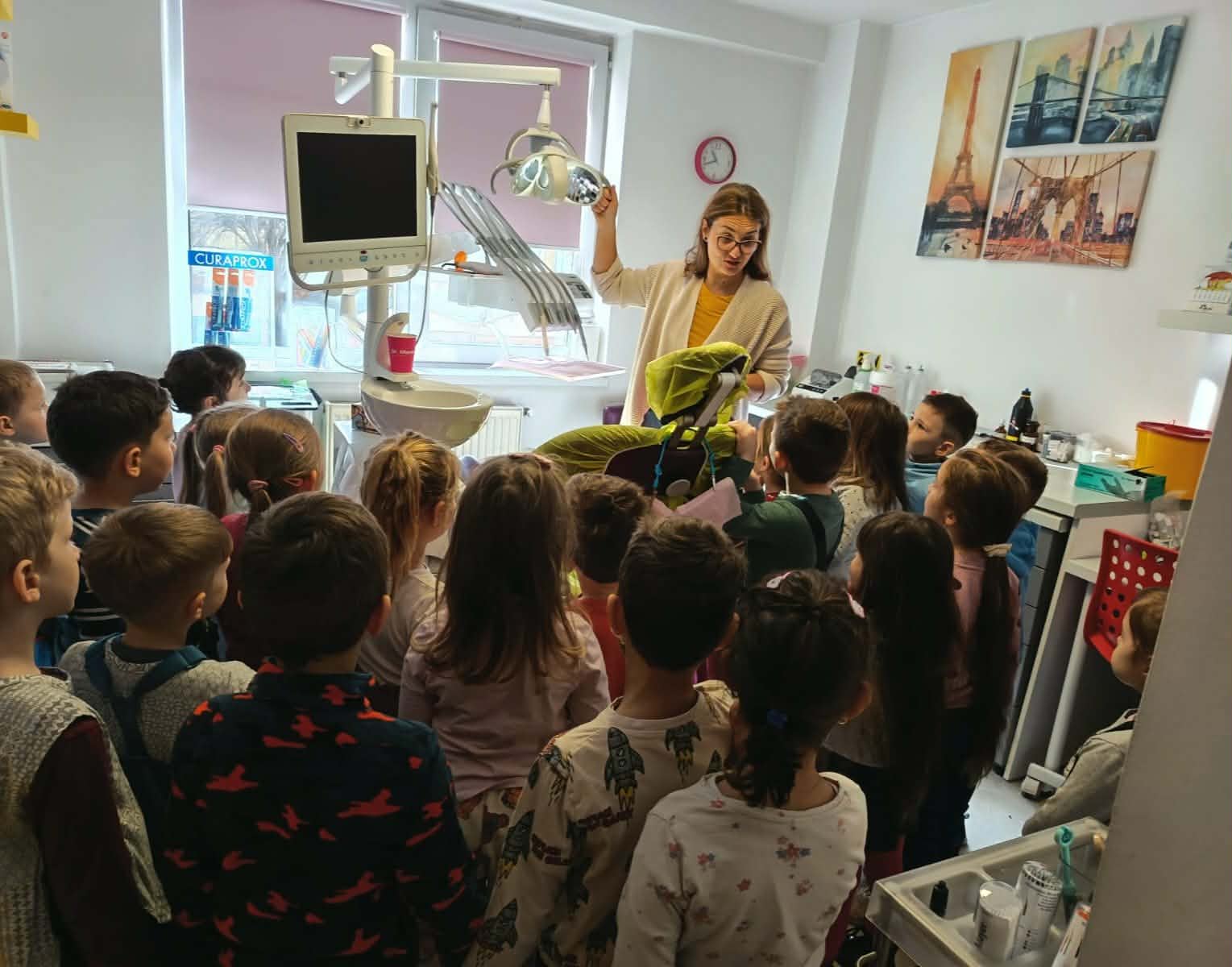 Óvodásainkkal ellátogattunk a fogorvosi rendelőbe, ahol a gyermekek játékos, barátságos légkörben ismerkedhettek meg a fogászat világával. A fogorvosnő kedvesen és türelmesen mutatta be a különböző eszközöket, megmagyarázva, mire szolgál egy-egy műszer, és hogyan segíti a fogak egészségének megőrzését. A gyerekek nagy örömmel próbálták ki a fogorvosi széket is, amelyet kíváncsian figyeltek, ahogy emelkedik és süllyed. A beszélgetés során szó esett a helyes fogápolásról, a rendszeres fogmosás fontosságáról és az egészséges szokások kialakításáról. A látogatás oldott, bizalmat ébresztő hangulatban zajlott, így bízunk benne, hogy a gyermekek számára a fogorvoshoz járás természetesebb, ismerősebb és kevésbé félelmetes élménnyé válik.