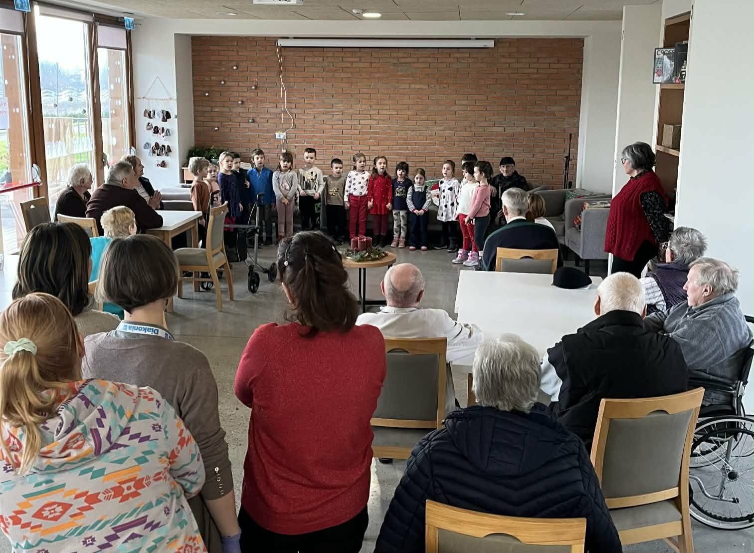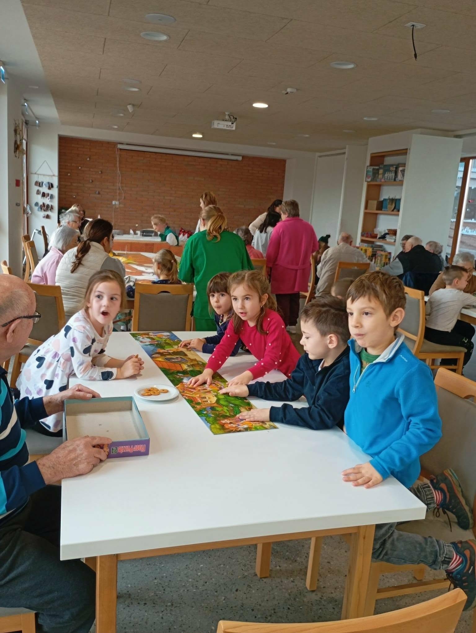 Karácsony előtt óvodásainkkal ellátogattunk az idősek otthonába, hogy ünnepi hangulatot és örömet vigyünk az ott élők mindennapjaiba. A gyermekek szeretettel készültek: dalokkal és versekkel köszöntötték az időseket, akik meghatódva és mosollyal az arcukon fogadták a műsort. A közös program ezután kötetlen, bensőséges együttlétté alakult. A gyerekek és az idősek együtt kirakóztak, beszélgettek, megosztották egymással élményeiket és gondolataikat, miközben finom süteményeket eszegettek. A találkozás szívélyes, meleg légkörben zajlott, és valódi generációk közötti kapcsolódást teremtett - örömet adva és kapva egyaránt.