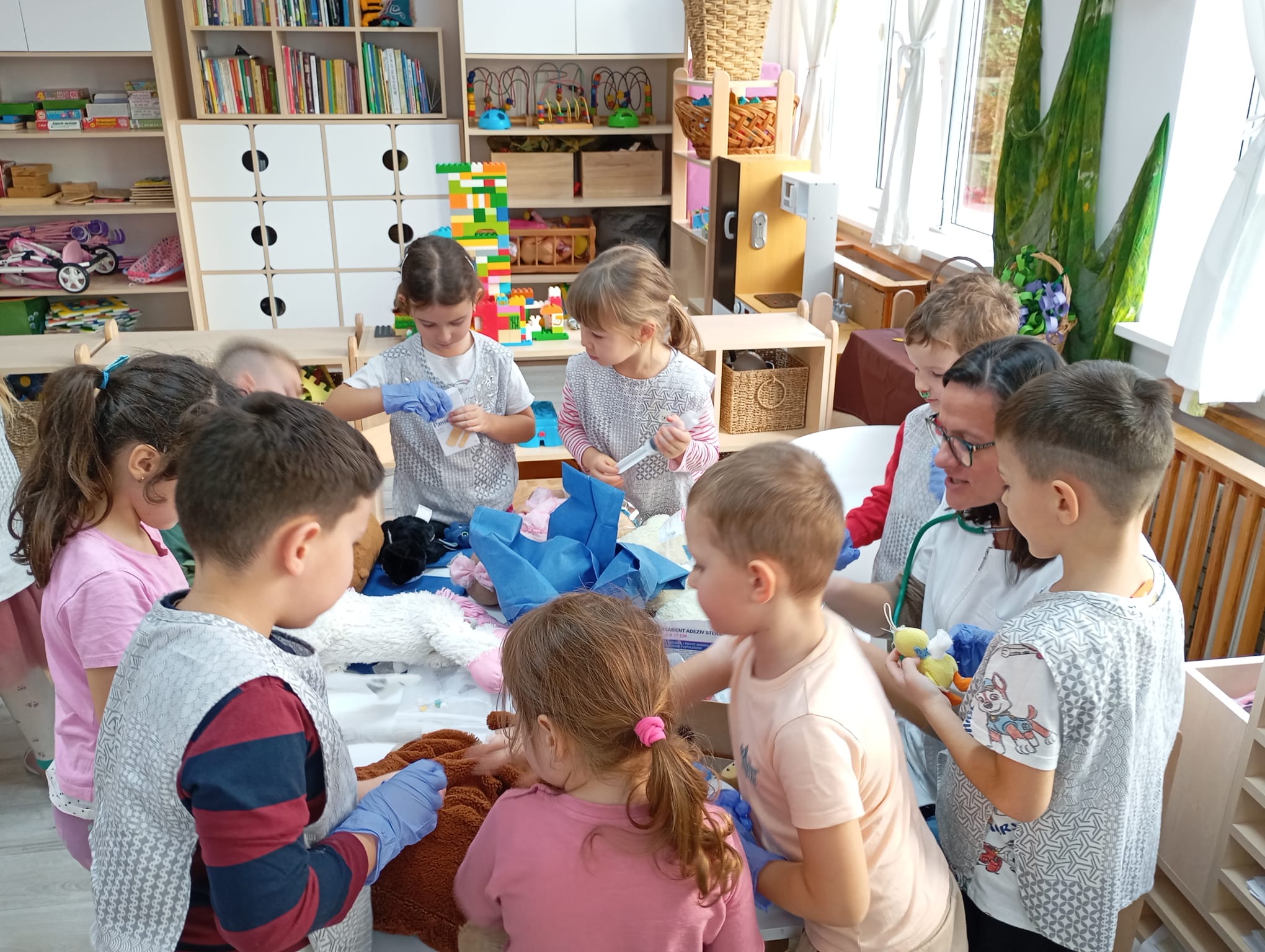 Meghívott szakembereink a tevékenység elején újszerű ismeretekkel gazdagították, bővítették a gyerekek látókörét a témában. Ezt követően a gyerekek valódi Teddy orvosokká válva, nagy szakértelemmel gyógyították a beteg kedvenceiket közösen a szakemberekkel. Gyógyítottak, kérdeztek- ennek következtében plüssállatkáik gyógyultak, tudásuk bővült és meggyőződésünk, hogy az orvosoktól és az orvoslással kapcsolatos félelmeik jelentősen törpültek a tartalmas tevékenység során.