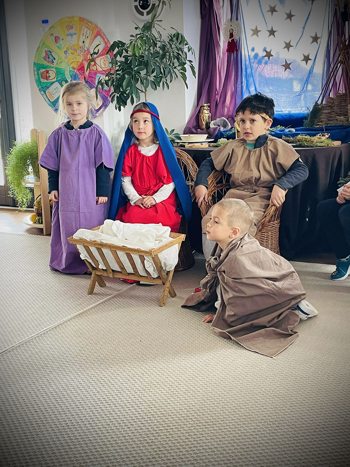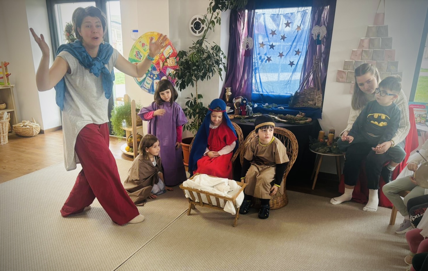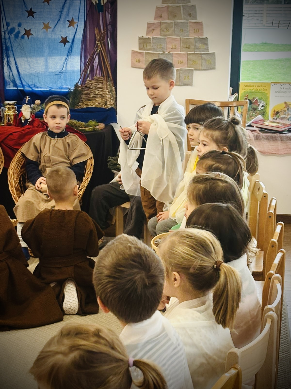 Az óvodában a gyermekek minden nap Betlehemes szerepjátékot adnak elő, előre megírt dramatikus forgatókönyv alapján. A játékot az óvónő irányítja, ő vezeti a jeleneteket és segíti a szereplők közötti váltást. Minden nap más gyermek öltheti magára a szereplők jelmezeit, így mindenki átélheti a különböző szerepekhez kapcsolódó élményeket: lehet Mária, József, pásztor, angyal, kis bárány vagy csacsi.