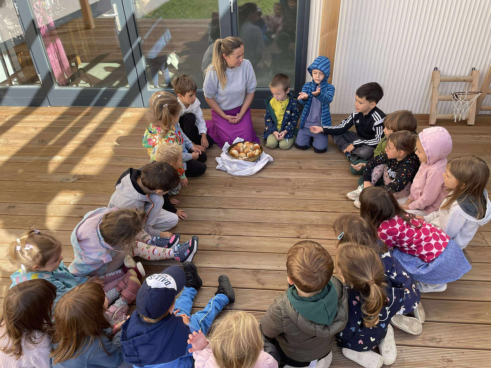 A tevékenységek során a gyermekek nemcsak új ismeretekre tettek szert a gabona útjáról, hanem fejlődött finom mozgásuk, megfigyelőképességük, türelmük és együttműködési készségük is. A közös kenyérsütés pedig valódi élménnyé tette a tanulást, és megerősítette bennük a közösséghez tartozás örömét.