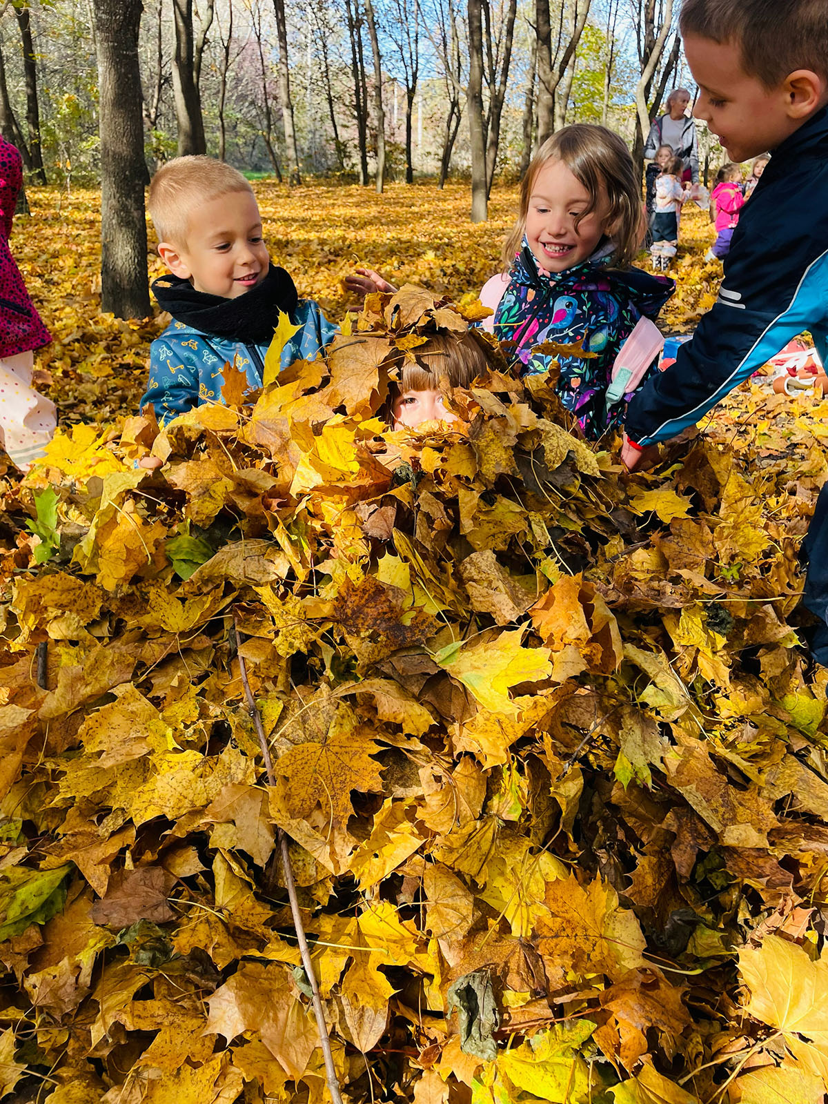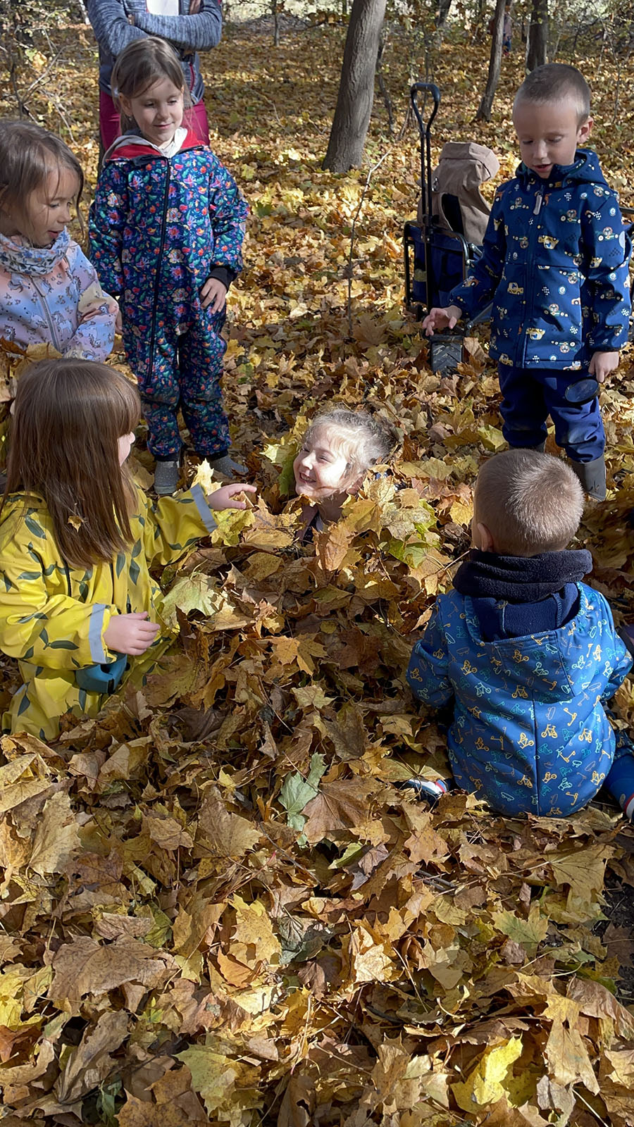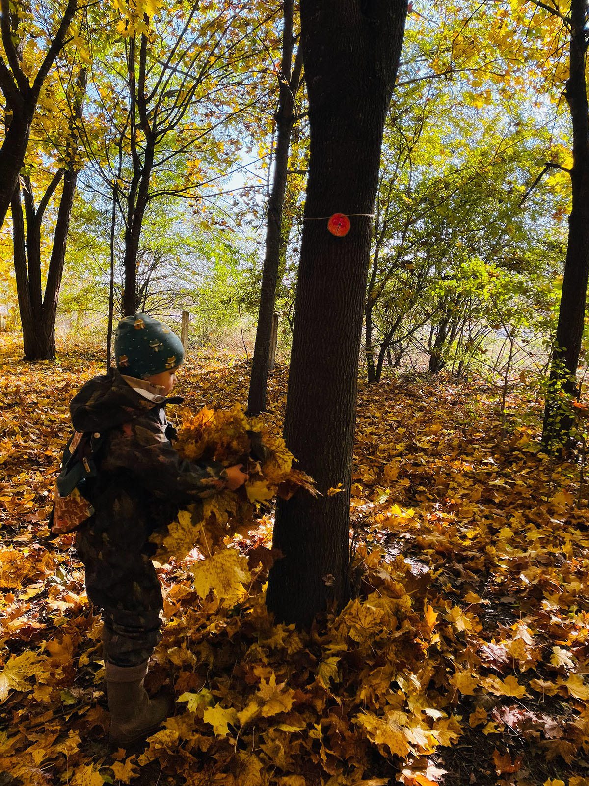 Az óvodai csoportunk egy hangulatos délelőttöt töltött az erdőben, ahol a gyerekek játékos feladatot kaptak. Különböző színű kartonlapokat (sárga, narancs, barna, piros, világos és sötét zöld), melyekre előre dupla falú ragasztó került, magukkal vittek, és ezekre kellett „erdei kincseket” gyűjteniük. A gyerekek lelkesen keresték a terméseket, leveleket, ágacskákat és egyéb apró kincseket, majd felragasztották azokat a megfelelő színű lapokra. A tevékenység nemcsak kreativitásukat fejlesztette, hanem közelebb hozta őket a természethez és felfedezés öröméhez is.